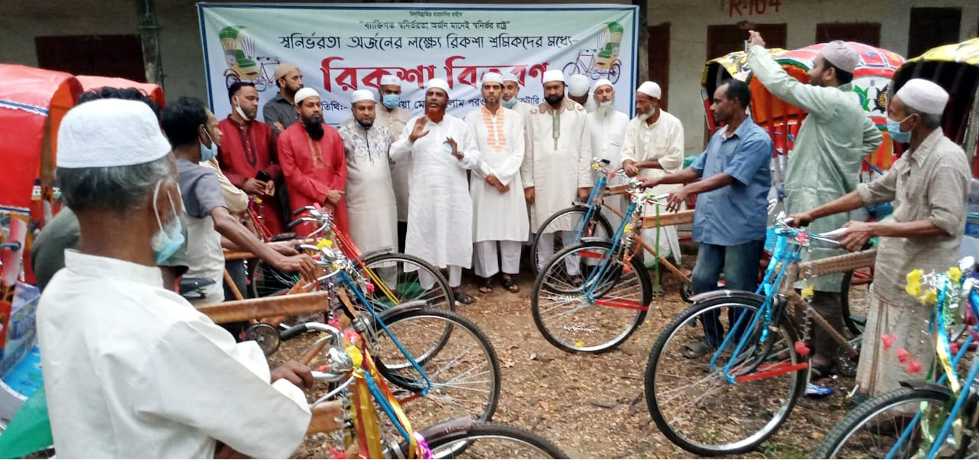 বাংলাদেশ জামায়াতে ইসলামীর সেক্রেটারী জেনারেল সাবেক এমপি অধ্যাপক মিয়া গোলাম পরওয়ার বলেছেন, আমাদের সমাজে জনসংখ্যার একটা বিশাল হচ্ছে হতদরিদ্র এবং শ্রমজীবি। এই বিশাল জনগোষ্ঠীকে অবহেলিত রেখে জাতীয় উন্নয়ন অগ্রগতি সম্ভব নয়। প্রতি বছর কিংবা কিছুদিন পর পর এইসব মানুষকে একটু একটু সহযোগিতা না করে স্থায়ী রোজগারের একটা ব্যবস্থা করতে পারলে ব্যক্তি সমাজ এবং জাতি উপকৃত হবে। ইনসাফভিত্তিক সমাজ বিনির্মাণের প্রত্যয়দীপ্ত কাফেলা বাংলাদেশ জামায়াতে ইসলামী স্বনির্ভরতা অর্জনের লক্ষ্যে রিকশা শ্রমিকদের মাঝে রিকশা বিতরণের উদ্যোগ নিয়েছে। এর ফলাফল সুদুরপ্রসারী। আজকে যেসকল ভাইদেরকে রিকশা প্রদান করা হয়েছে কিছুদিন পর এই রিকশাচালক ভাইয়েরা মিলে আরো অন্য ভাইকে রিকশা কিনে দিতে সহযোগিতা করতে সমর্থ হবে ইনশাআল্লাহ। এভাবেই সমাজে বৈষম্য দুর হবে এবং ইনসাফ প্রতিষ্ঠিত হবে। তবে জীবনের সকল ক্ষেত্রে জবাবদিহীতা ও সৎ উপার্জন করতে হবে। তাহলে ইহকালিন সাফল্য ও পরকালিন মুক্তির পথ প্রশ্বস্ত হবে।